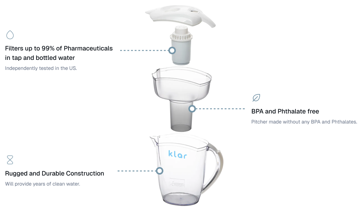Klar uses the latest water filtration technology to bring you water that is virtually free of PFOAs, Fluoride, heavy metals and microplastics. Regular tap water is transformed by Klar’s unique seven stage filtration system, turning regular tap water into great tasting mineral water.