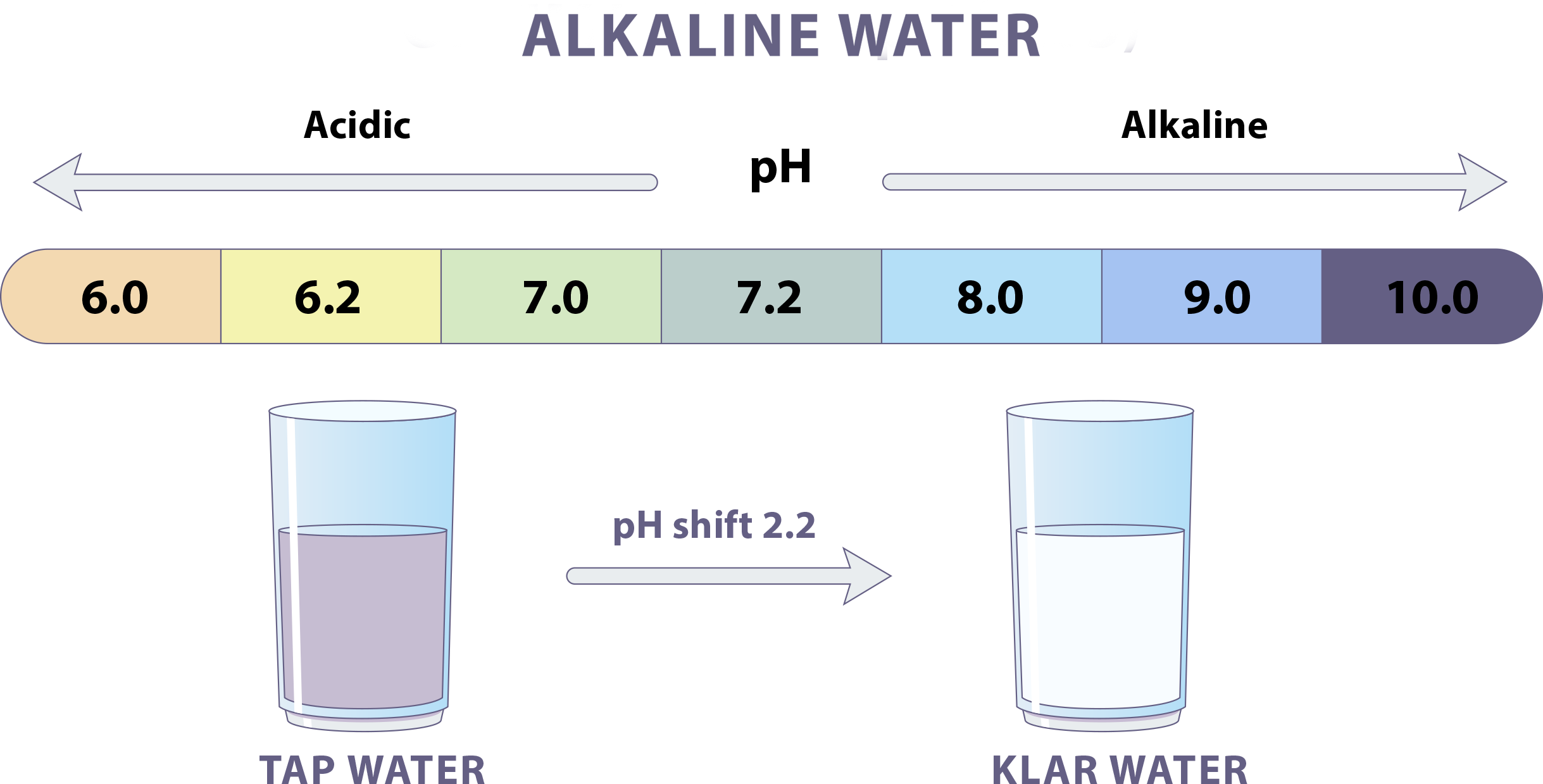The Klar water filter will shift the PH of the water by 2.2 towards alkaline